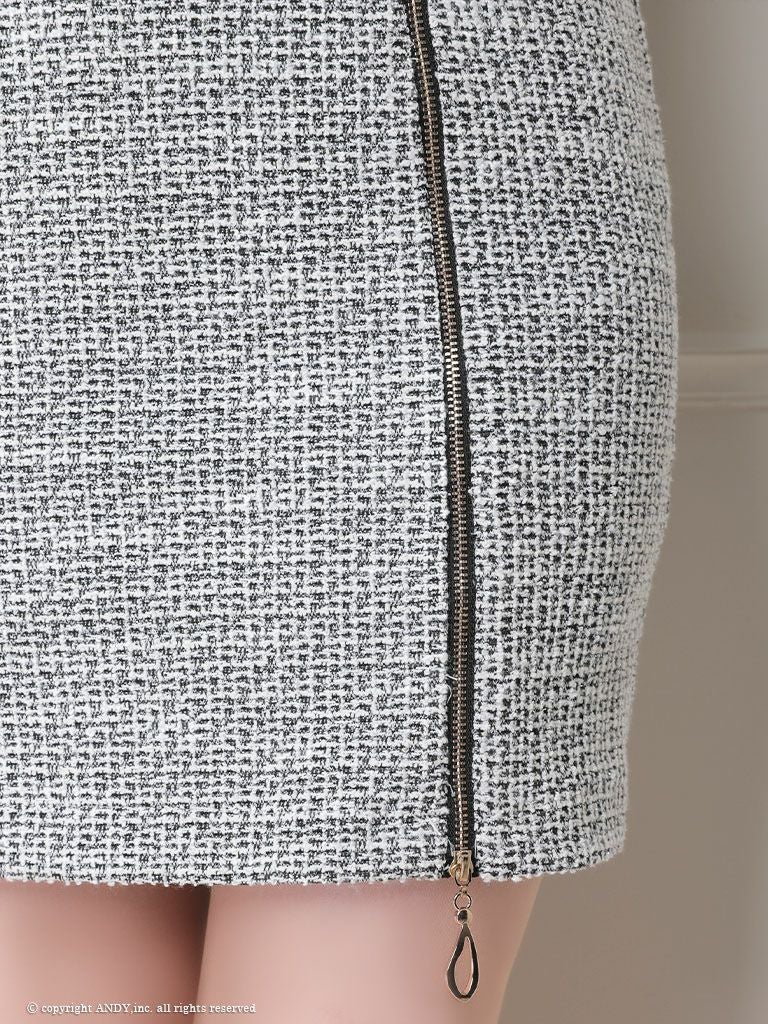 キャバドレス Andy アンディ 高級ツイードジップノースリーブタイトミニドレス