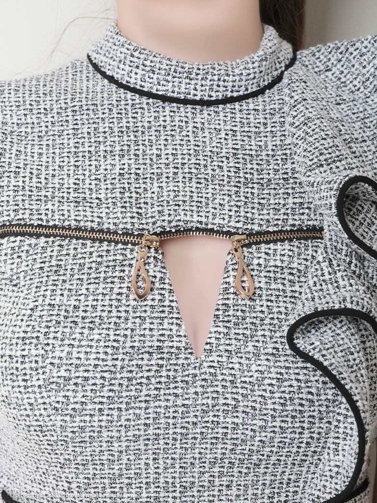 4. ジップデザイン高級ミニドレス