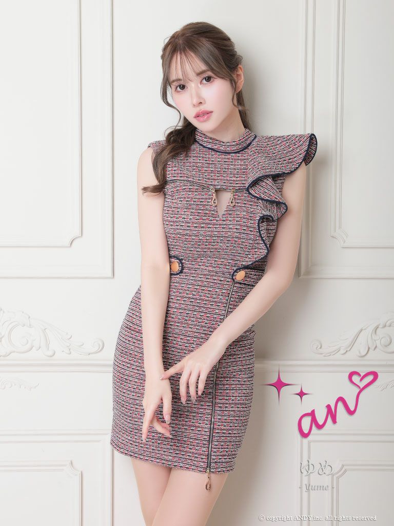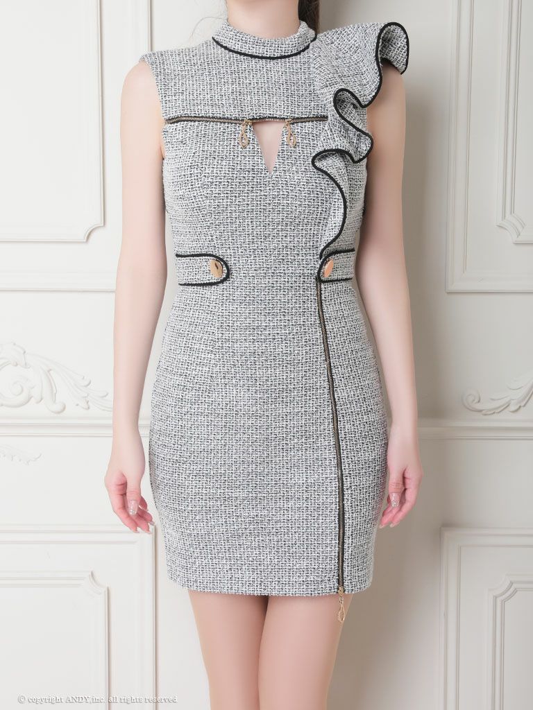 キャバドレス Andy アンディ 高級ツイードジップノースリーブタイトミニドレス