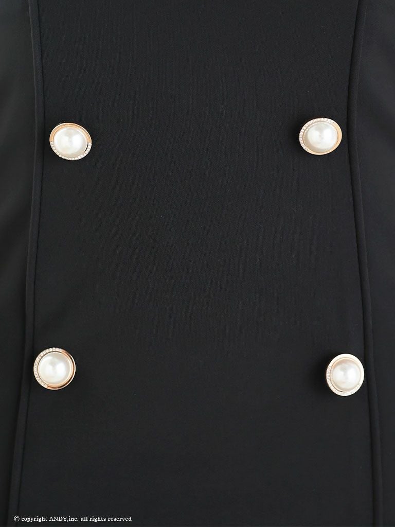 パールボタンのアクセントも◎ [an/アン] 高級ショルダーバックル肩出し 二の腕カバー長袖 袖ありタイトミニドレス