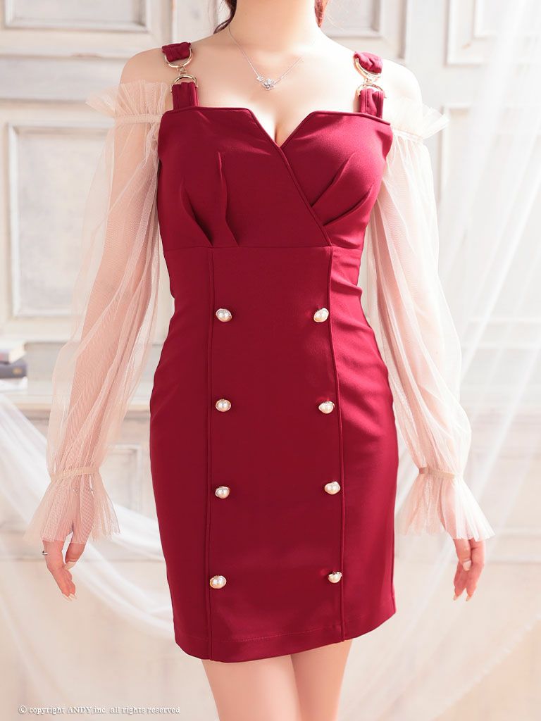 キャバドレス Andy アンディ 高級ショルダーバックル肩あき長袖タイトミニドレス