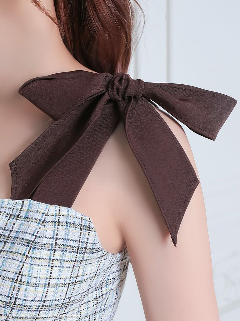 5. [an/アン] 高級ツイードショルダーリボン付きノースリーブフレアミニドレス