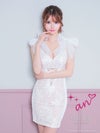 キャバドレス an アン 高級ノースリーブフラワーレースショルダーリボンワンカラータイトミニドレス