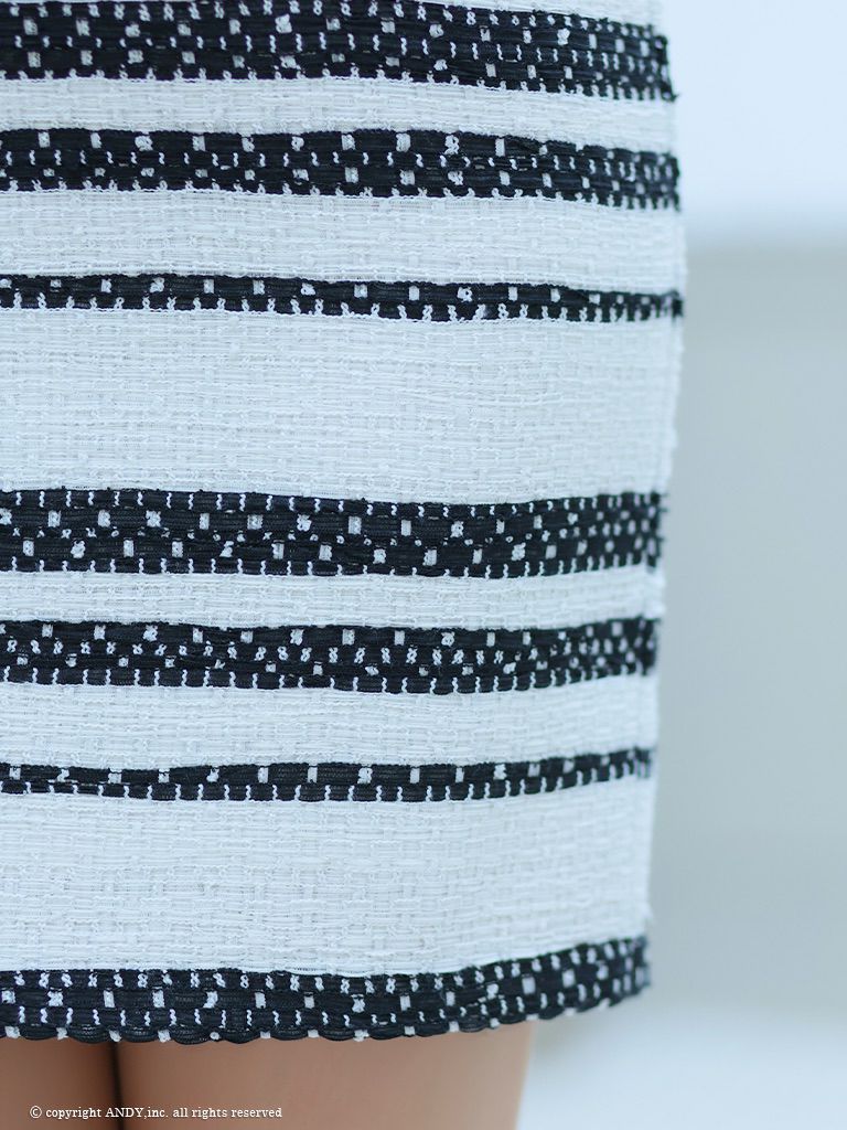 4. [an/アン] 高級キャミソール ショルダーチェーン リボン ジップ ボーダーデザイン タイトミニドレス