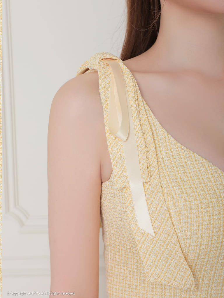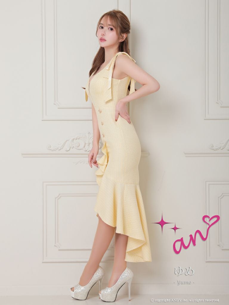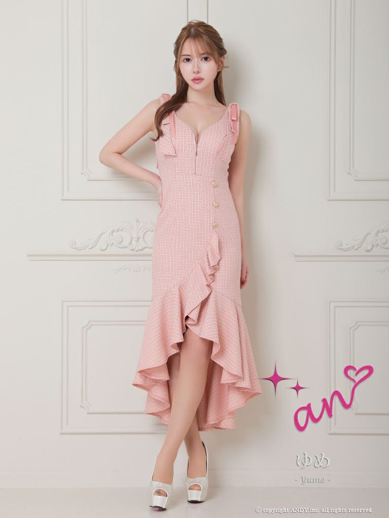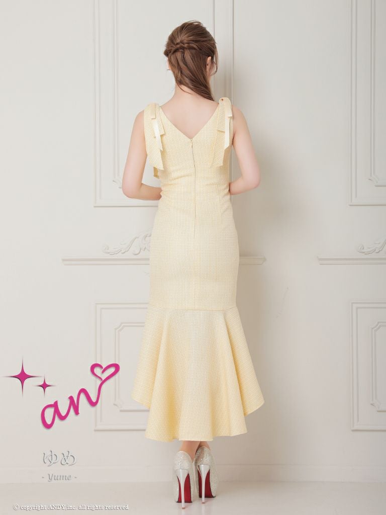 肩リボンで大人可愛い☆ [an/アン] 高級 フロントジップ ノースリーブ ロングテール 膝丈ドレス