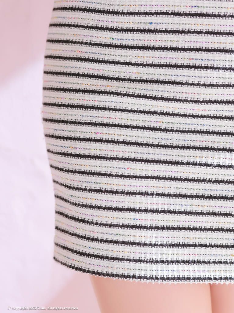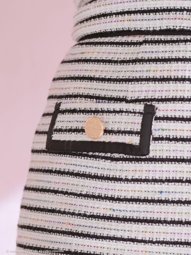 5. [an/アン] 高級ボーダー キャミソール リボン ジップ ツイード タイトミニドレス