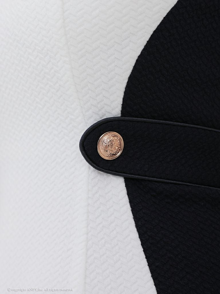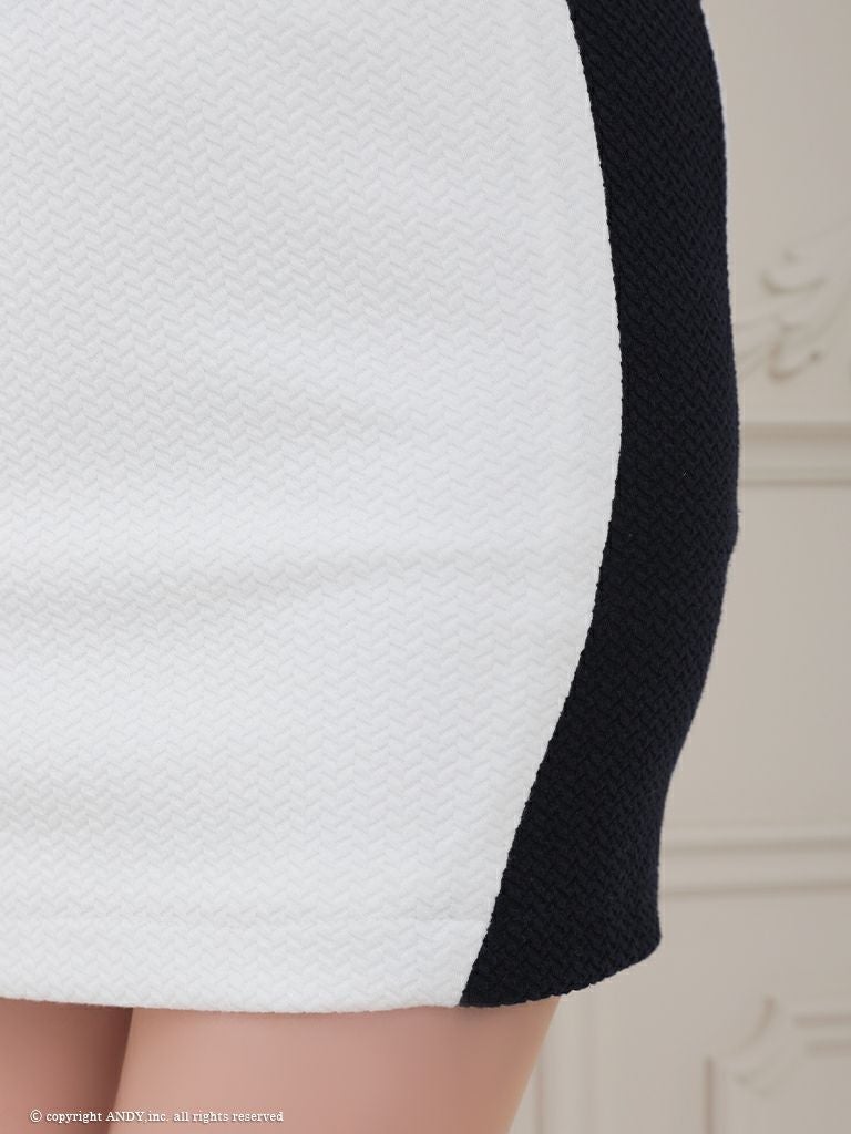 着痩せ効果抜群☆ [an/アン] 高級 ノースリーブ チェーン ショルダー バストカット ジップ バイカラー 谷間魅せ タイトミニドレス