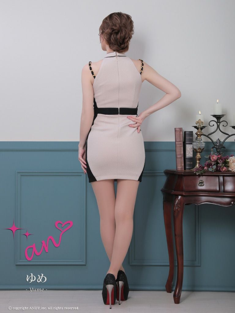 4. [an/アン] 高級 ノースリーブ チェーン ショルダー バストカット ジップ バイカラー 谷間魅せ タイトミニドレス