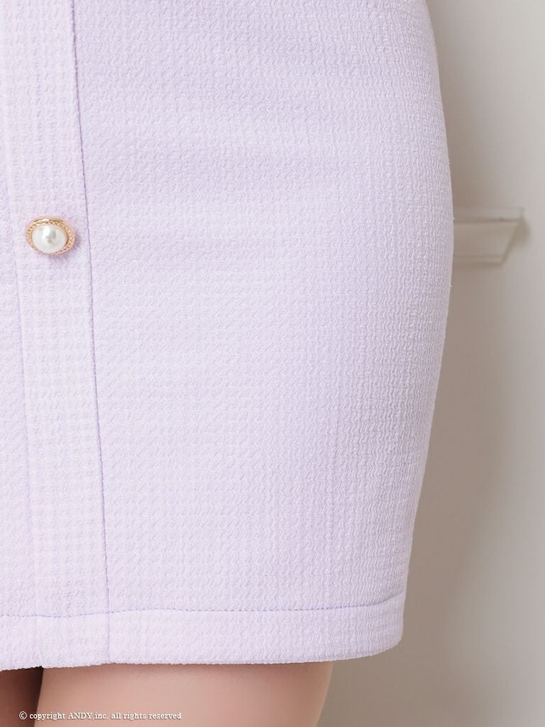 キャバドレス an アン 高級チェーンキャミソールサテンリボンフロントパールボタンツイードタイトミニドレス