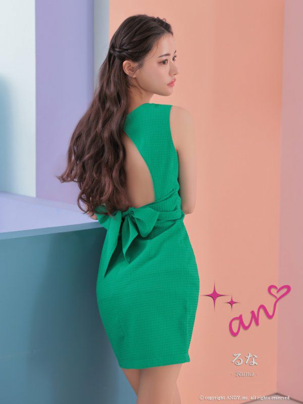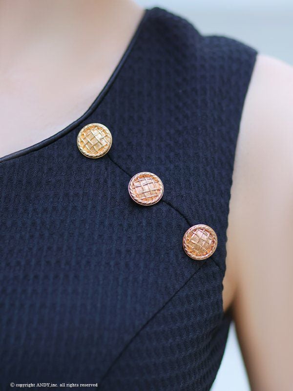 5. [an/アン] 高級ゴールボタン付きノースリーブウエスト&バックカットリボンワンカラータイトミニドレス