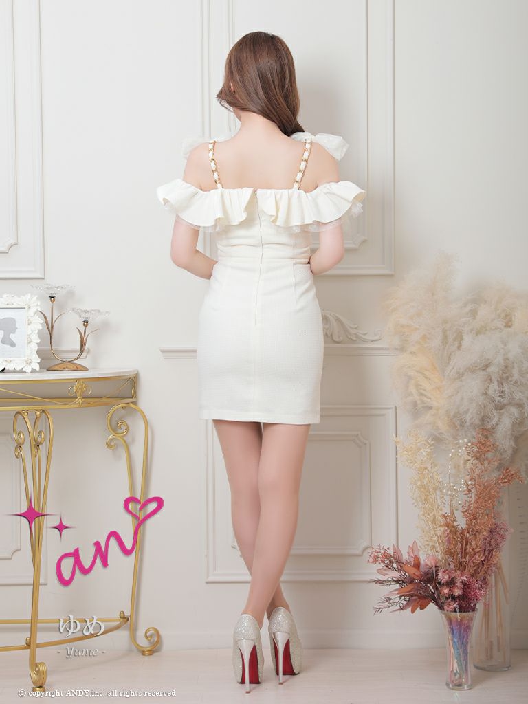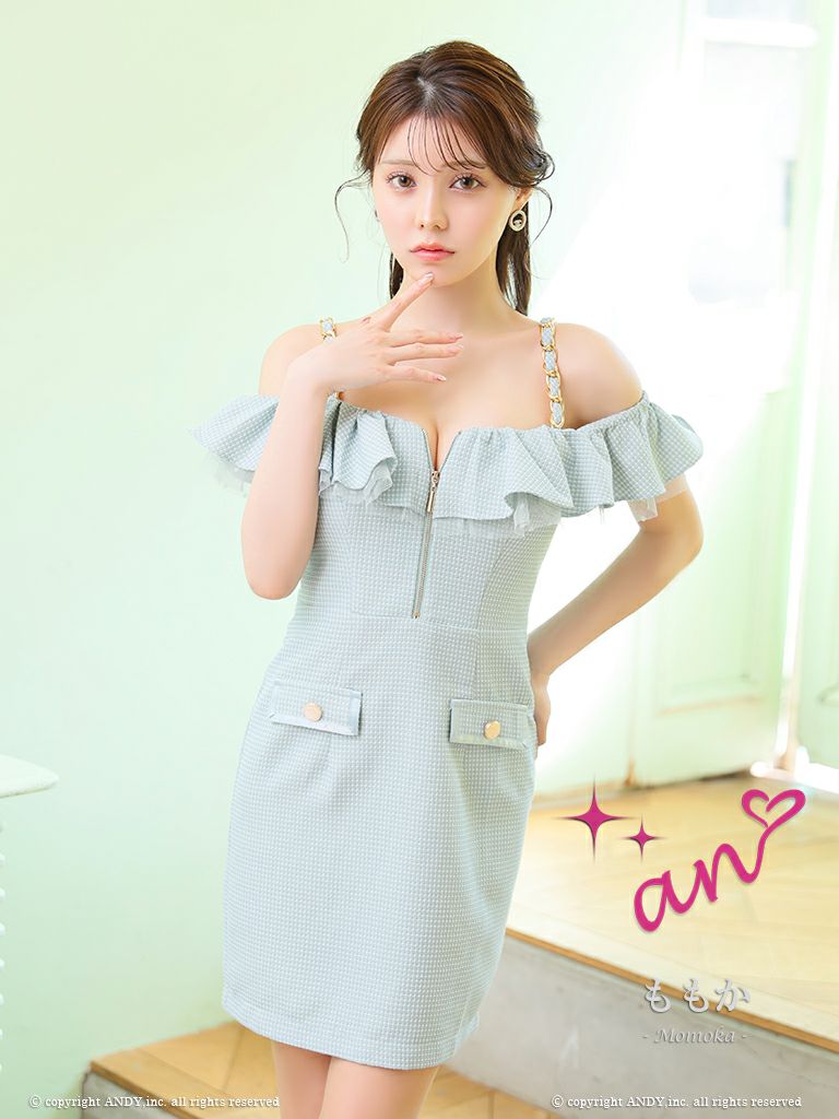 キャバドレス an アン 高級肩あきジップツイードボタンショルダーリボンチェーンタイトミニドレス
