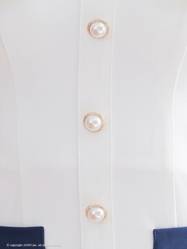 5. [an/アン] 高級トリコロールゴールドフロントボタン肩出し 二の腕カバープリーツフレアミニドレス