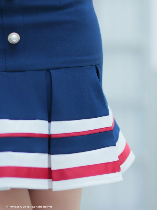 お洒落なトリコロールで存在感抜群☆ [an/アン] 高級トリコロールゴールドフロントボタン肩出し 二の腕カバープリーツフレアミニドレス