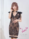 キャバドレス an アン 高級ショルダーリボンノースリーブ花柄レースジップシンプルタイトミニドレス