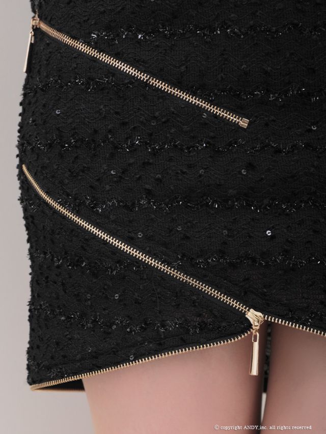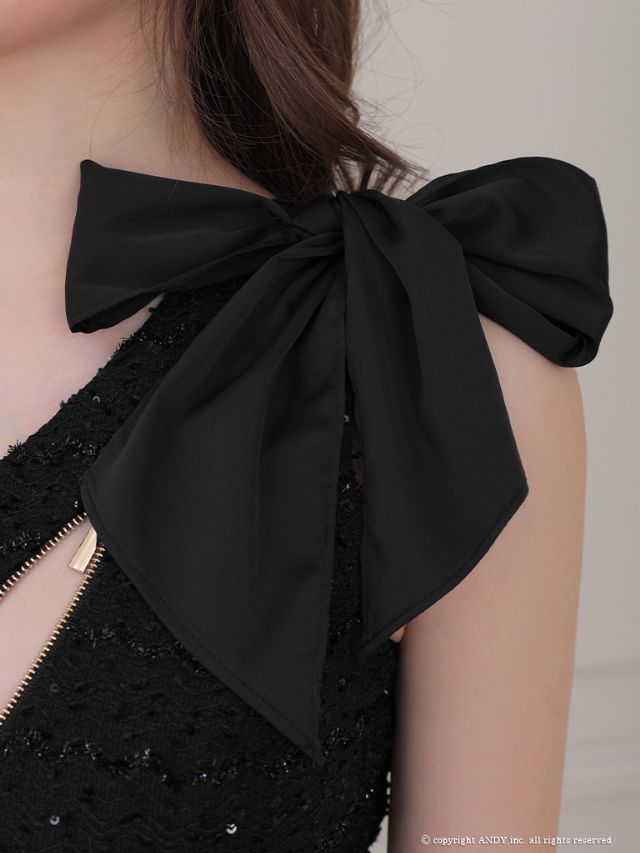 4. [an/アン] 高級ワンショルダー ジップ ショルダーリボン ガーリー タイトミニドレス