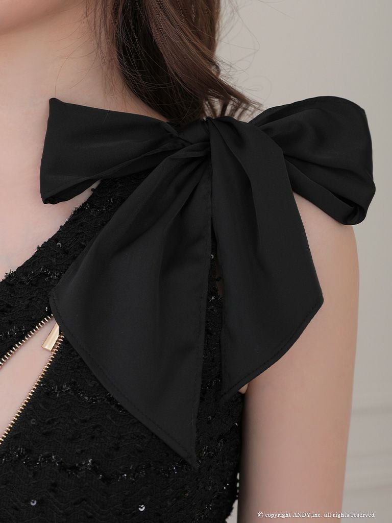 4. [an/アン] 高級ワンショルダー ジップ ショルダーリボン ガーリー タイトミニドレス