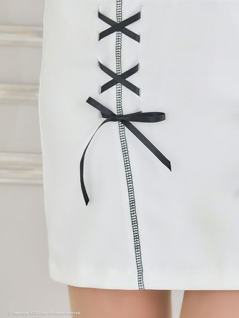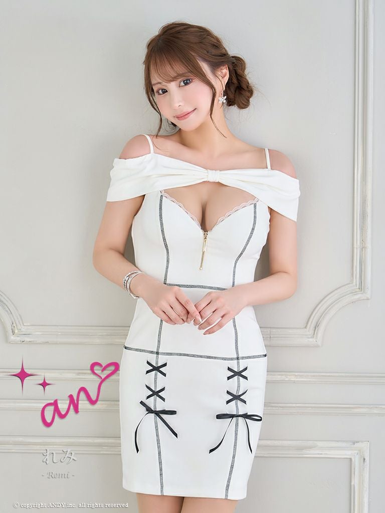 キャバドレス an アン 高級肩あきジップリボンモチーフバイカラータイトミニドレス