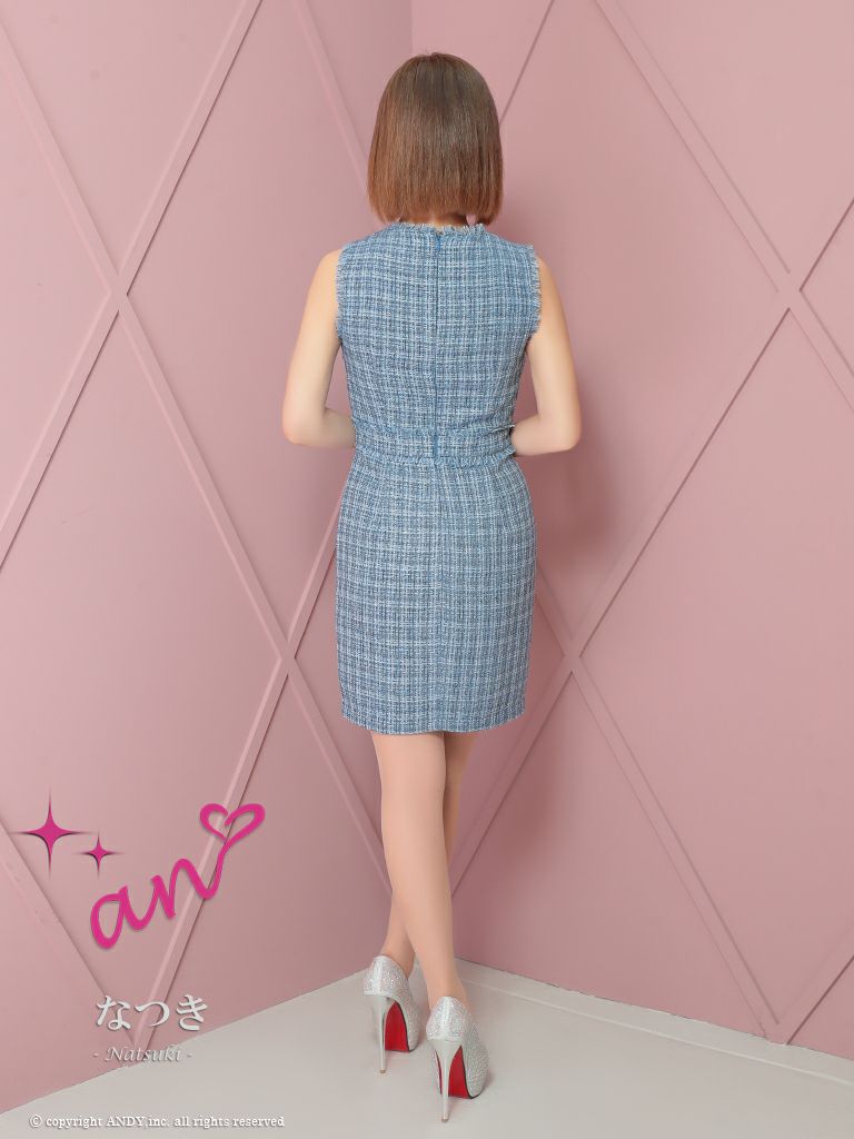 キャバドレス an アン 高級ノースリーブチェック柄ツイードジップポケットデザインタイトミニドレス