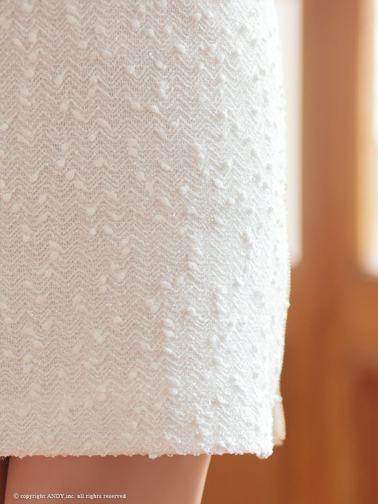 6. [an/アン] 高級肩出し 二の腕カバー ジップ ツイード 長袖 袖あり シフォンスリーブ リボン パール タイトミニドレス