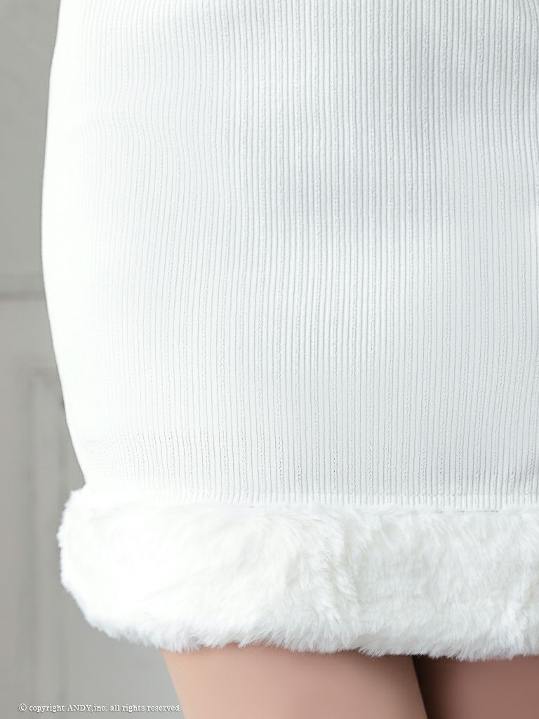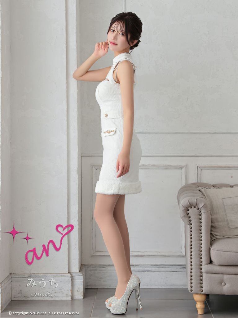 4. SALE [an/アン] 高級 ホルターネック ジップ バストカットボタン チェーン 裾ファー 谷間魅せ タイトミニドレス
