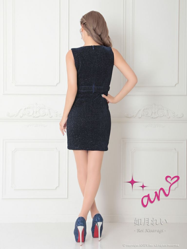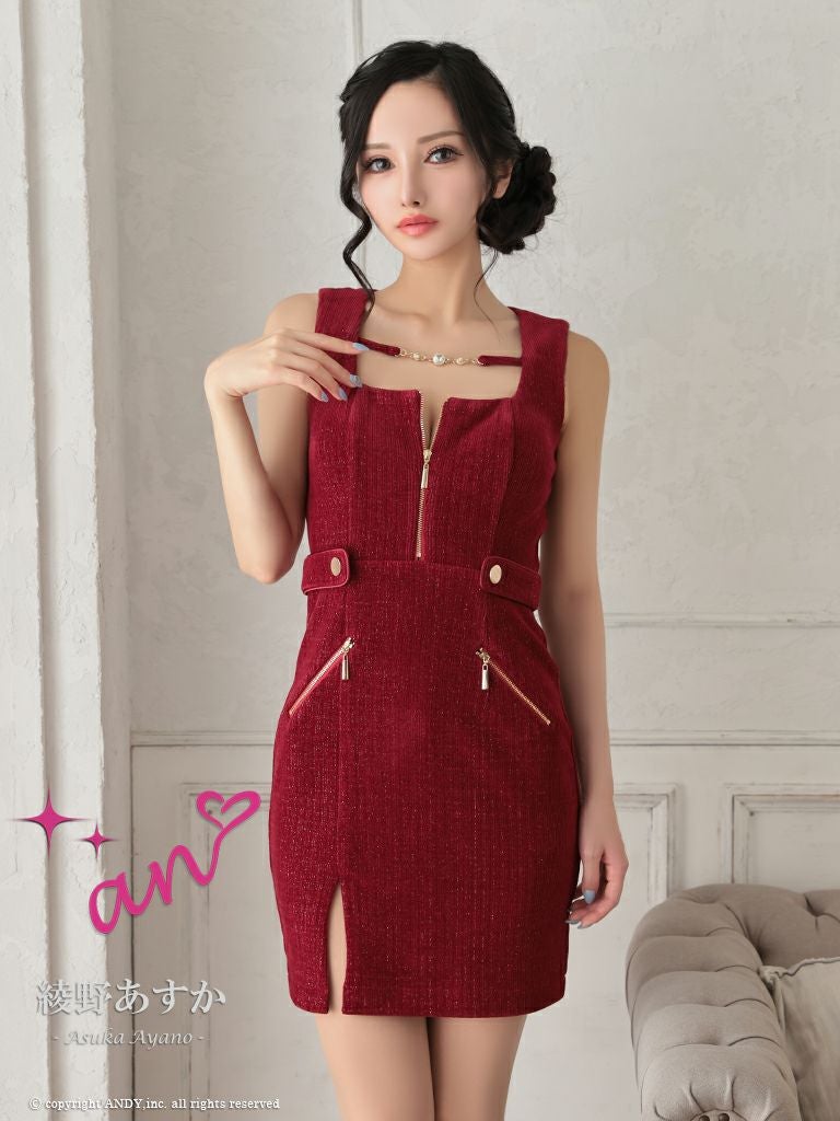 キャバドレス an アン 高級ノースリーブジップポケットゴールドボタンスリットタイトミニドレス