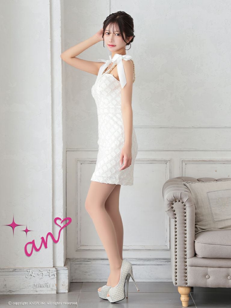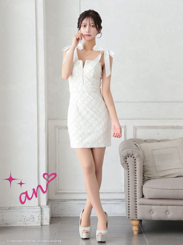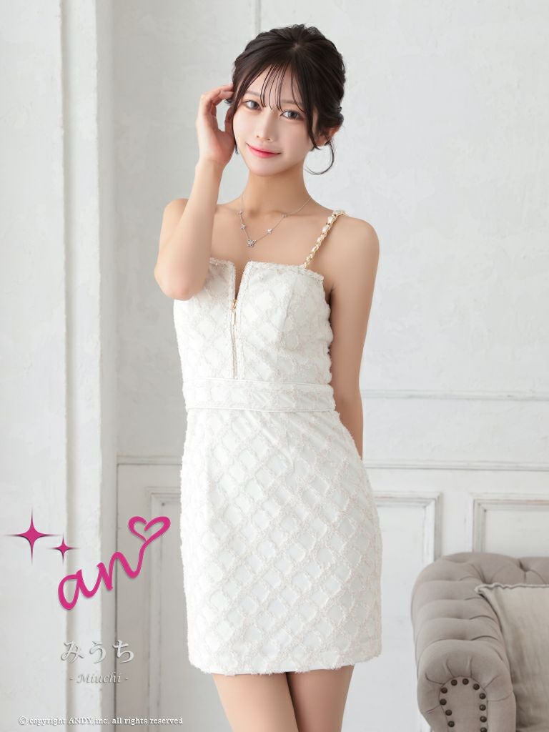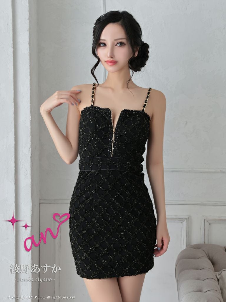 キャバドレス an アン 高級キャミソールフロントジップショルダーチェーンリボンタイトミニドレス