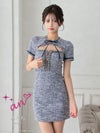 キャバドレス an アン 高級半袖ツイードジップゴールドチェーンリボンタイトミニドレス