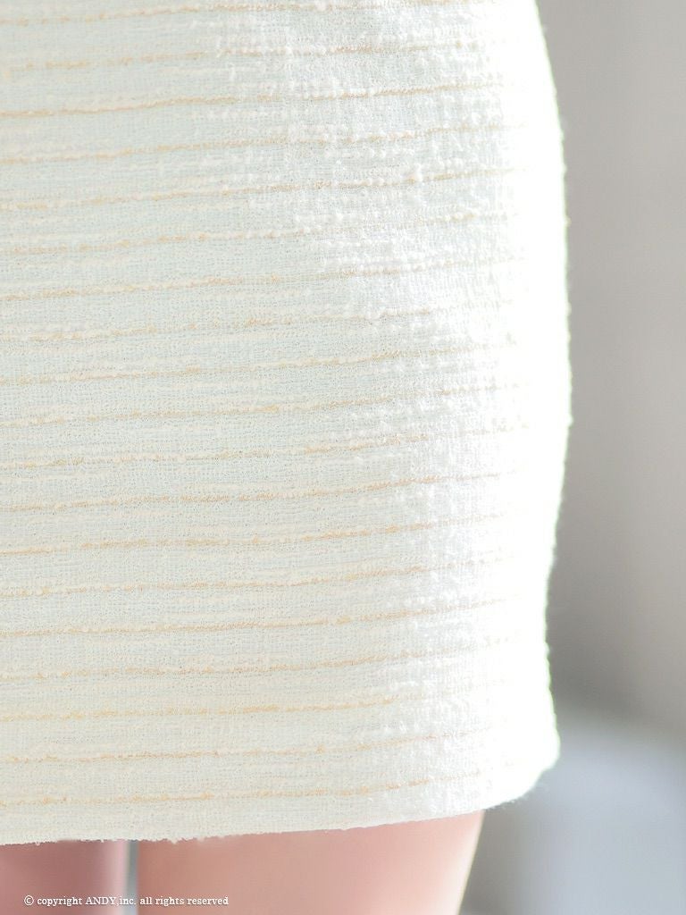 4. [an/アン] 高級 半袖 ツイード ジップ ゴールドチェーン バストカット リボン 谷間魅せ タイトミニドレス