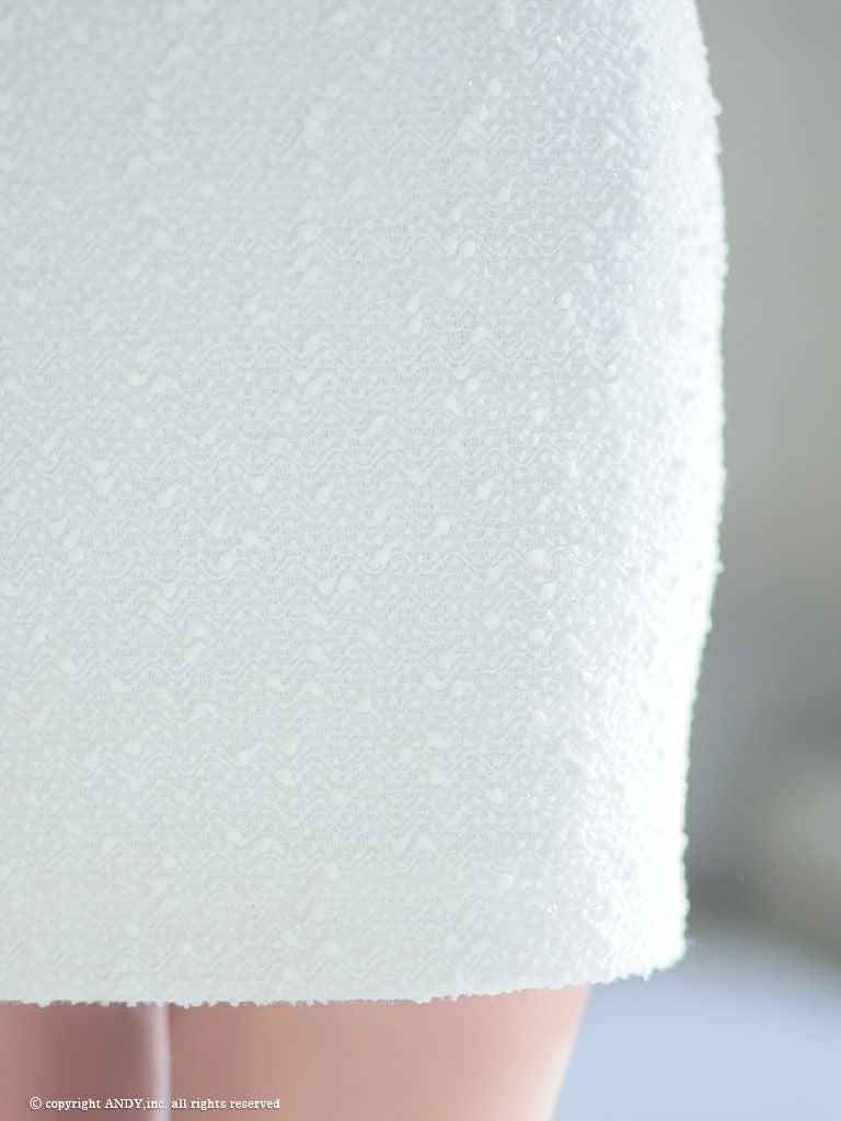 5. [an/アン] 高級ショルダー ビジュー キャミソール リボン ストレッチ ツイード ジップ タイトミニドレス
