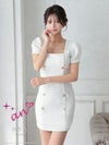 5. [an/アン] 高級半袖パフスリーブスクエアネックゴールドダブルボタンツイードタイトミニドレス