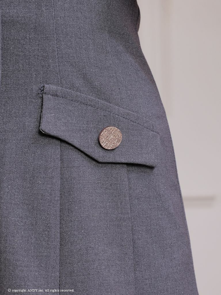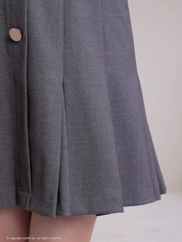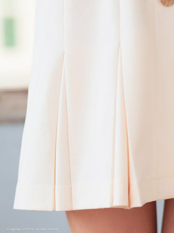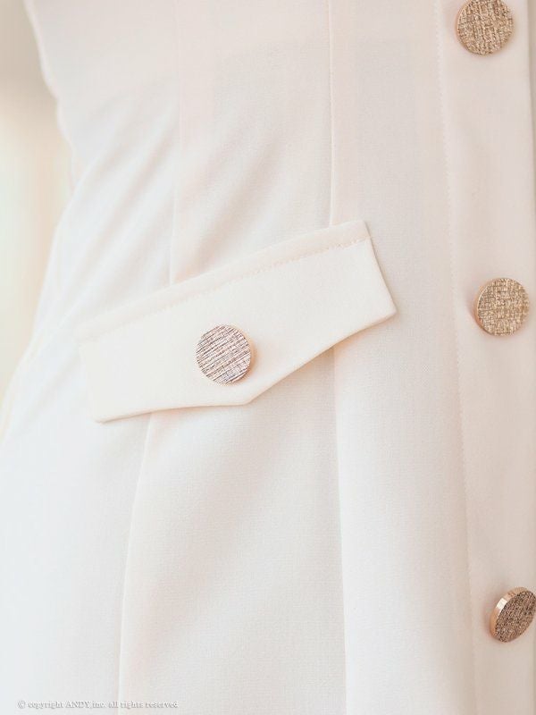 4. [an/アン] 高級袖ありオフショルダーゴールドボタンワンカラープリーツフレアミニドレス