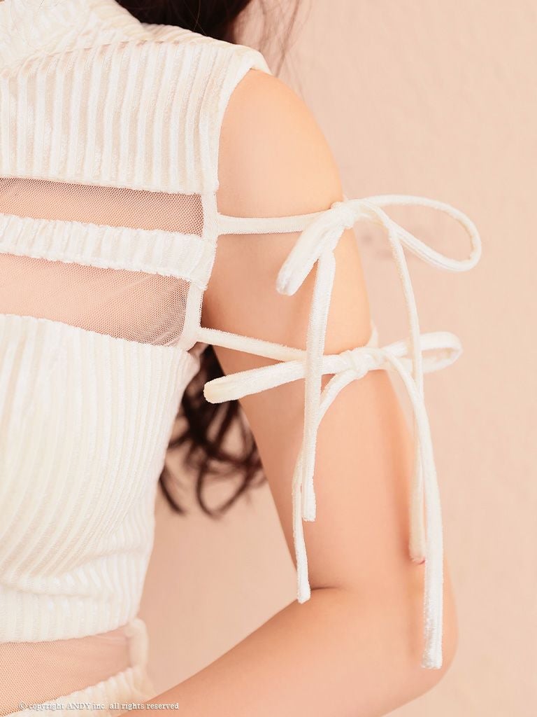 5. [an/アン] 高級 ノースリーブ ジップ バストカット リボン シアー レース 谷間魅せ タイトミニドレス