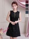 高級 ノースリーブ ジップデザイン ビジュー ドット柄 背中魅せ フレアミニドレス