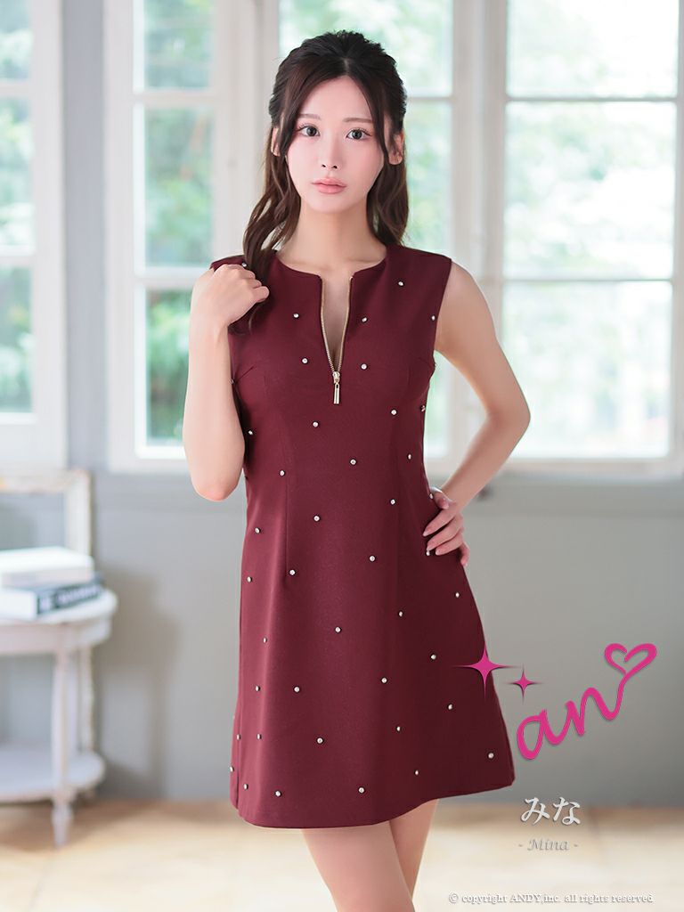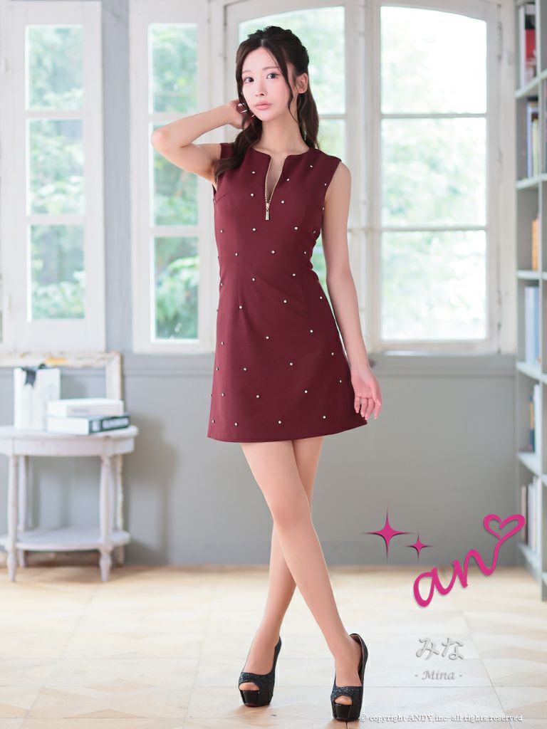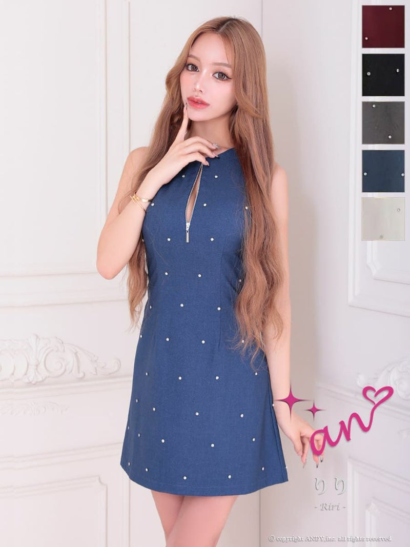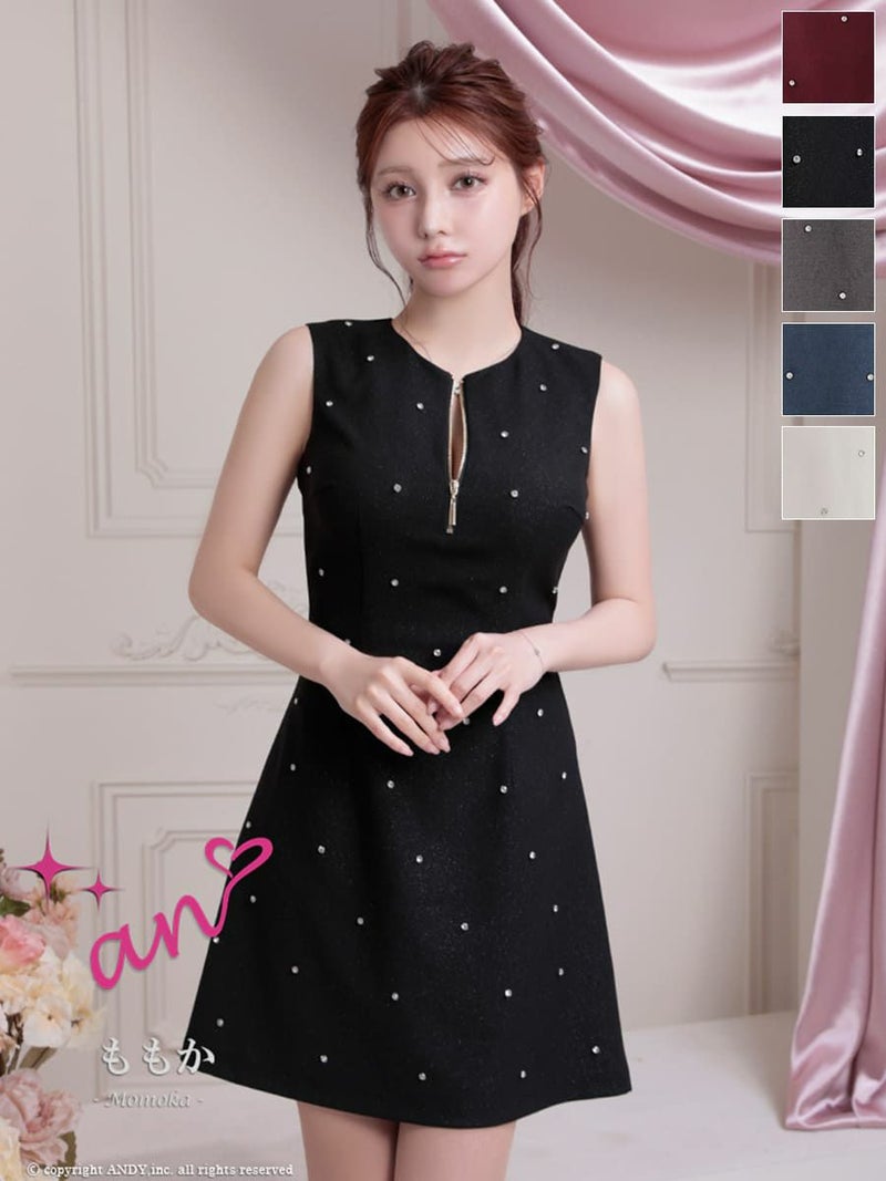 4. [an/アン] 高級 ノースリーブ ジップデザイン ビジュー 背中魅せ フレアミニドレス