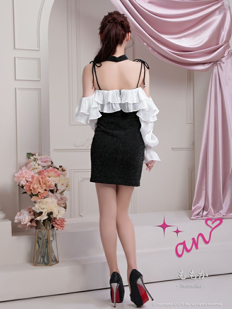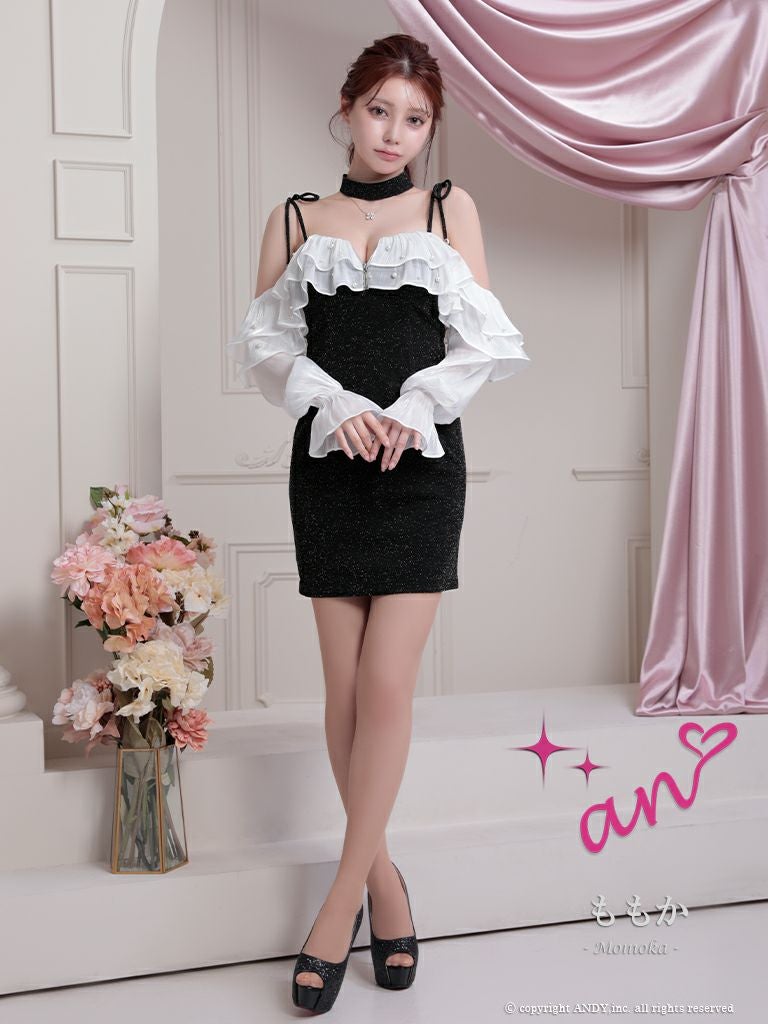 キャバドレス an アン 高級2way肩あき長袖パールラメチョーカー付きタイトミニドレス