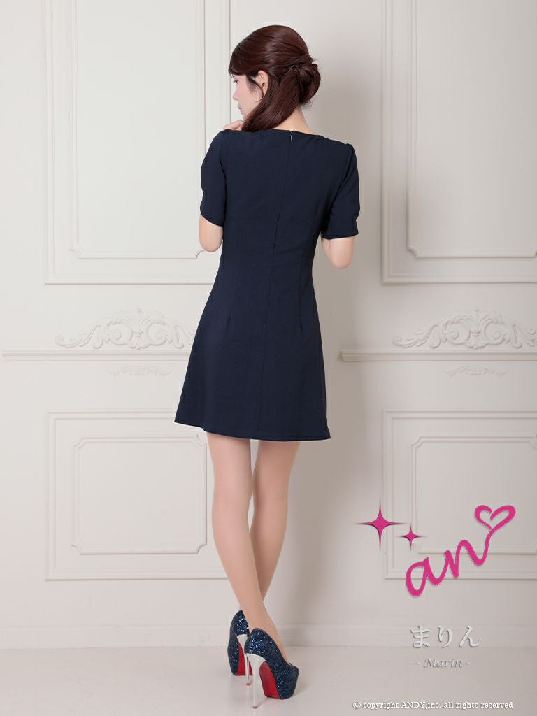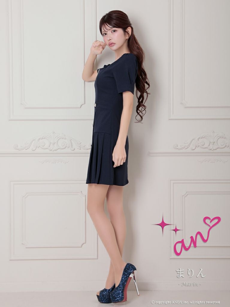 キャバドレス an アン 高級半袖ジップスクエアネックボタンプリーツフレアミニドレス