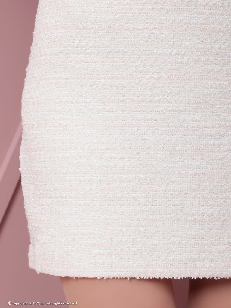 4. [an/アン] 高級ノースリーブ ジップ ツイード パールボタン ワンカラー タイトミニドレス
