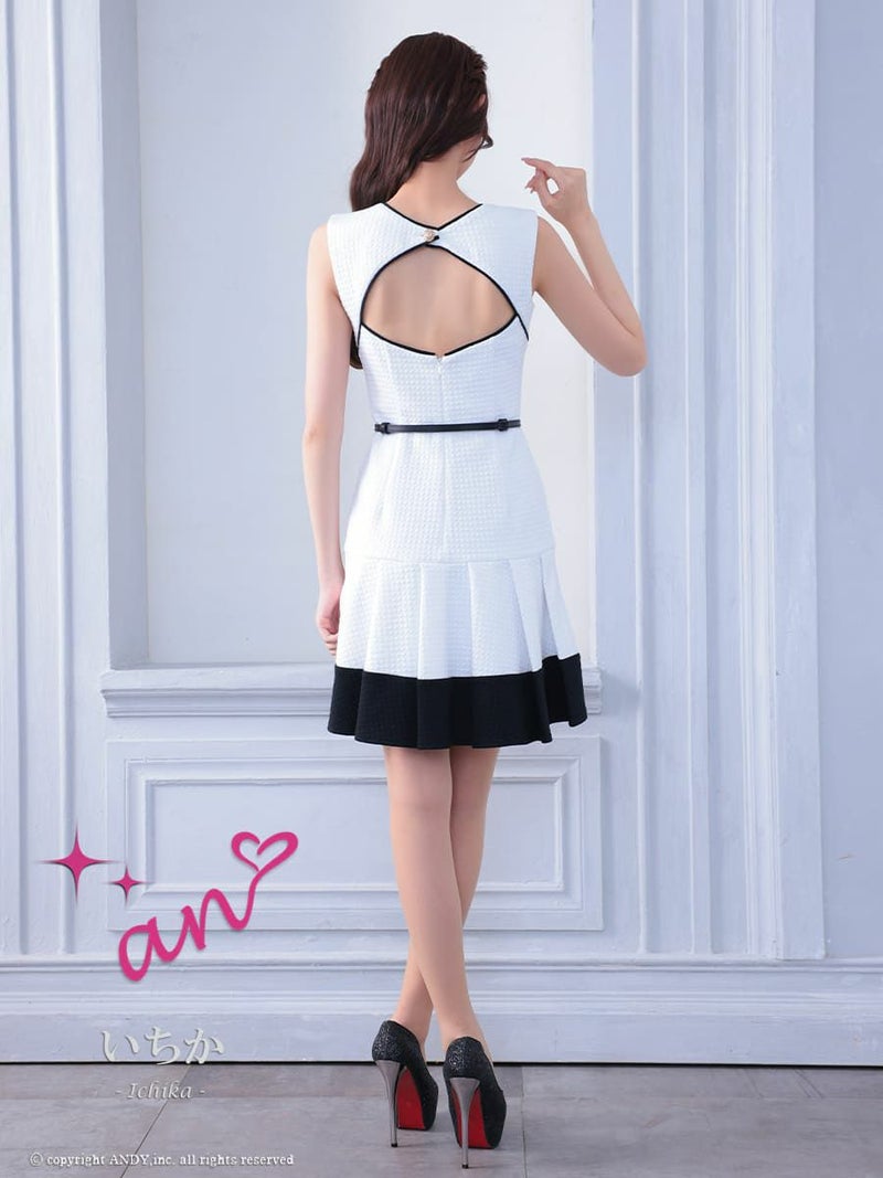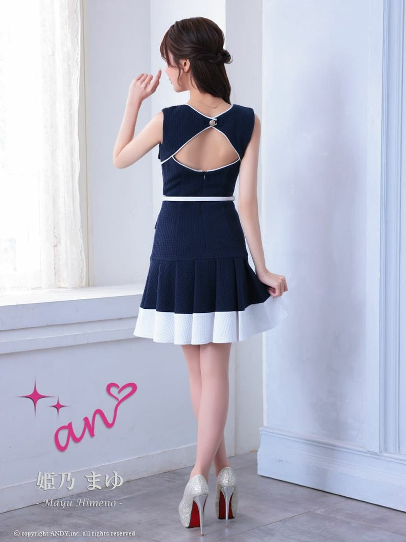 キャバドレス Andy アンディ 高級 ノースリーブ ウエストベルト ポケット 背中魅せ バストカット プリーツ フレアミニドレス