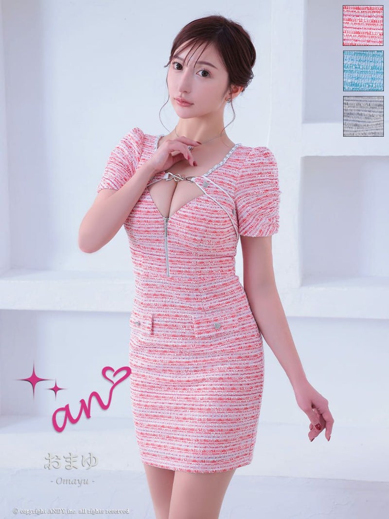 キャバドレス Andy アンディ 高級 半袖 ジップ デザイン ツイード ポケット バストカッ ト タイトミニドレス