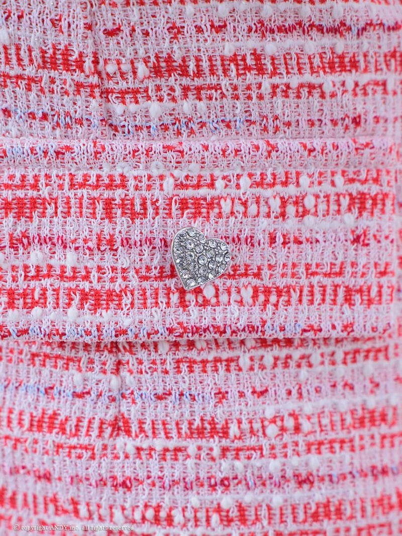 さりげないハートのボタンが可愛い★ [an/アン] 高級 半袖 ジップ デザイ ンツイード ポケット バストカット タイトミニドレス