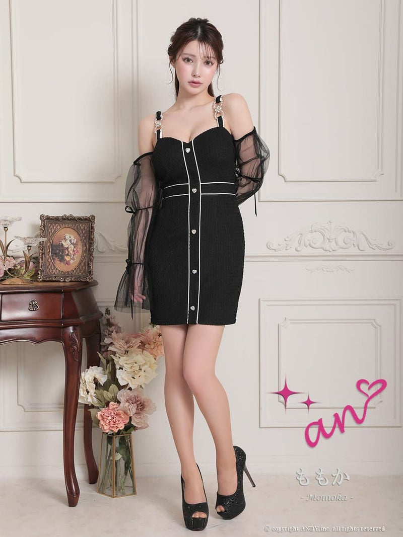 キャバドレス Andy アンディ 高級キャミソールチュール袖ハートビジュータイトミニドレス