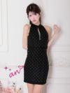 4. [an/アン] 高級ホルターネックビジューチェーンワンカラージップタイトミニドレス