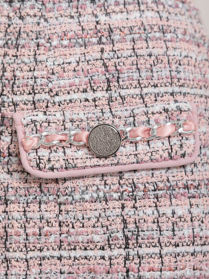 4. [an/アン] 高級 キャミソール ジップデザイン ポケット チュール袖 バストカット ツイード タイトミニドレス