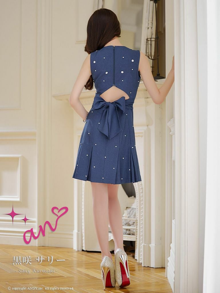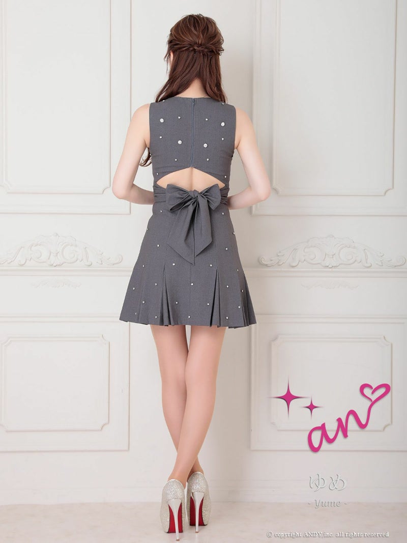 5. [an/アン] 高級 ノースリーブ ビジュー ジップ 背中魅せ プリーツ フレアミニドレス