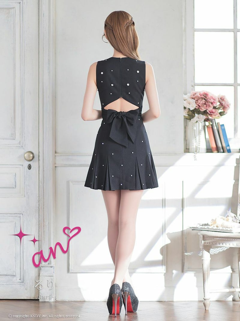 4. [an/アン] 高級 ノースリーブ ビジュー ジップ 背中魅せ プリーツ フレアミニドレス