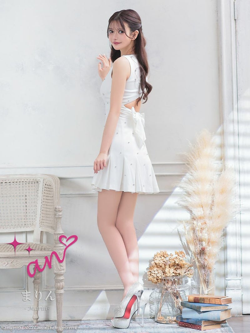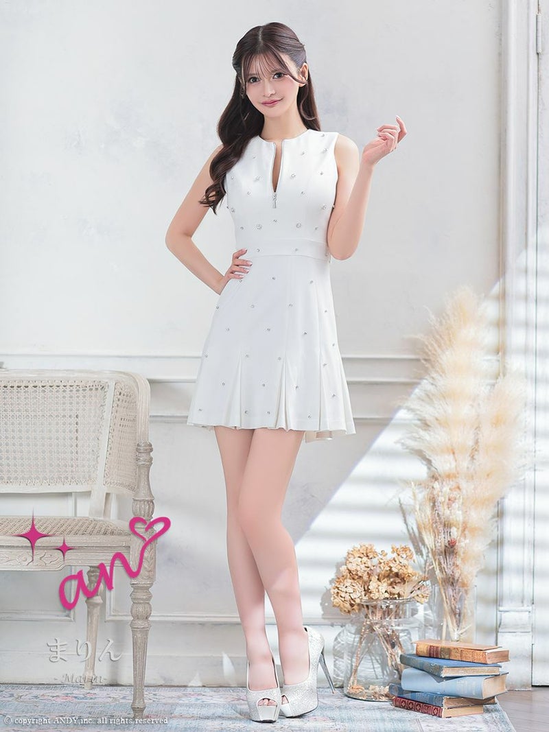 バストジップであざとく谷間魅せ♡ [an/アン] 高級 ノースリーブ ビジュー ジップ 背中魅せ プリーツ フレアミニドレス