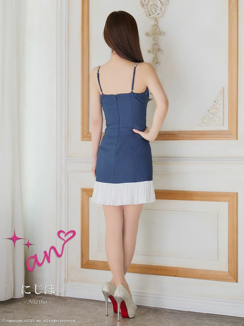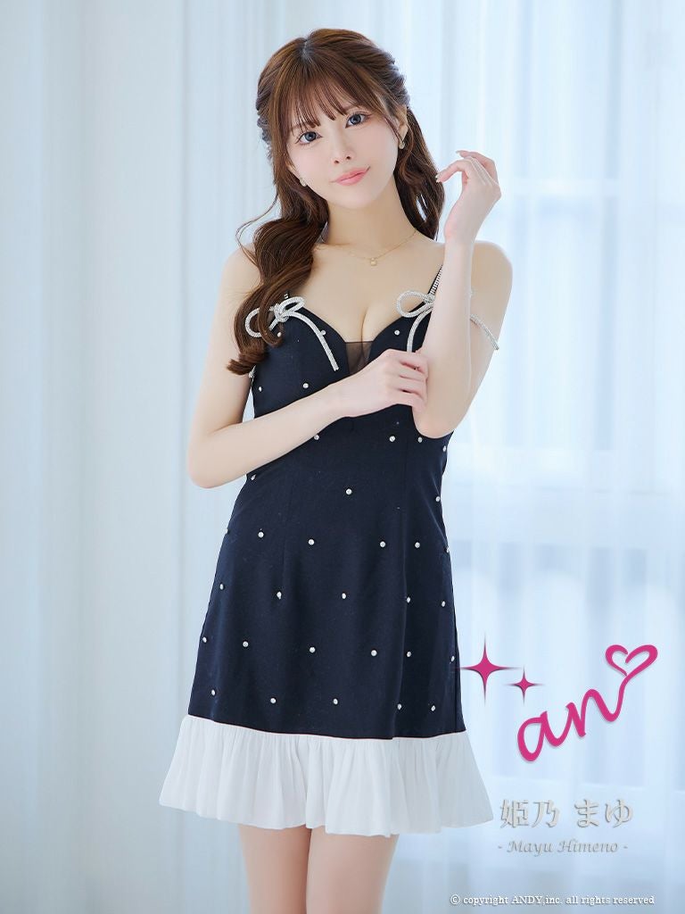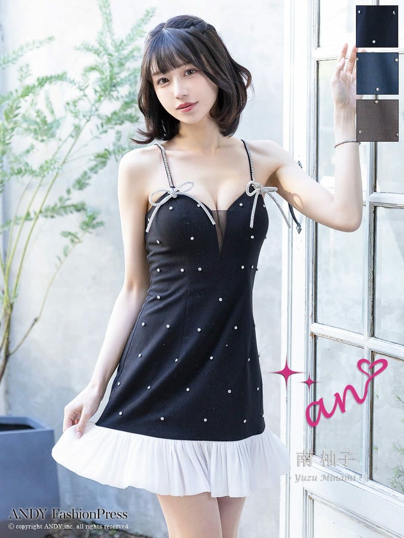キャバドレス an アン キャミソール ビジュー フリル リボン バストシースルー フレアミニドレス