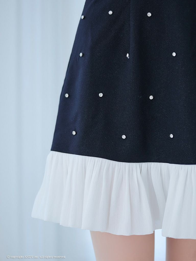 5. [an/アン] 高級 キャミソール ビジュー フリル リボン バストシースルー フレアミニドレス