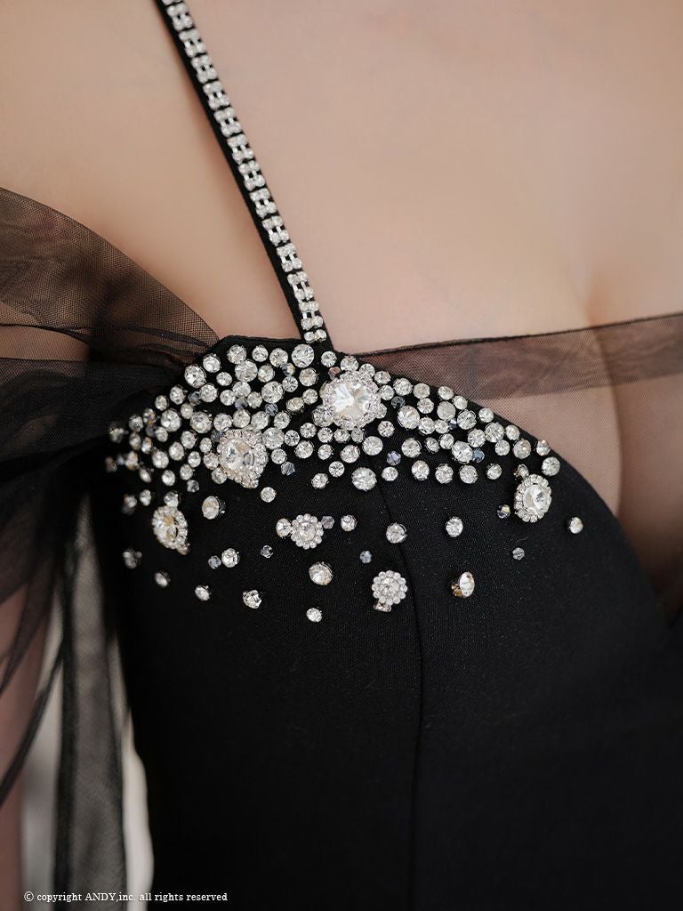 6. [an/アン] 高級 キャミソール ビジュー バストシースルー 長袖 谷間魅せ タイトミニドレス
