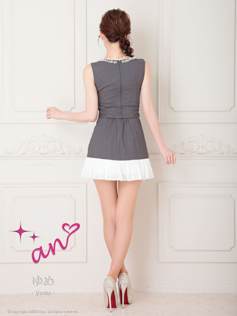 キャバドレス an アン ノースリーブ フロントジップ ビジュー セットアップ 谷間魅せ タイトミニドレス